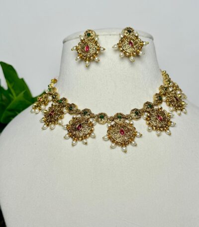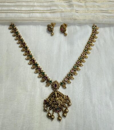 Haram – Long, statement necklaces inspired by South Indian temple designs.